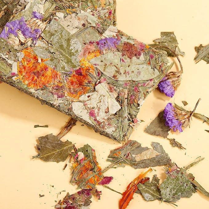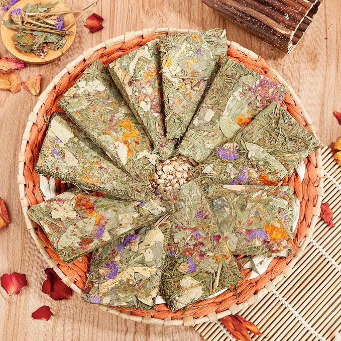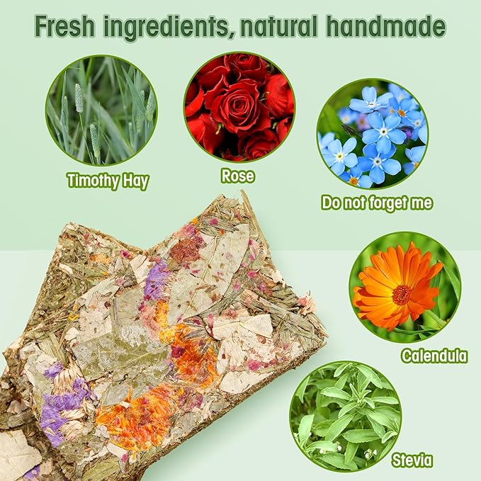 - 【Pure Natural Ingredients for Optimal Health】Rabbit treats for bunnies are made with only the best natural materials,including timothy hay, compressed dried flowers, and herbs.The balanced nutrition ensures your little guy enjoys the more natural foods than the processed ones.