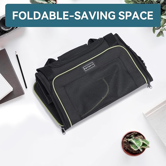 - [Portable & Collapsible] The pet carrier can also be used as a soft-sided cat kennel for regular outings and vet visits with cats and small dogs, it comes with a removable machine washable cozy mat and a large pocket. When not in use, just unzip it and fold it down into a flat package for storage.