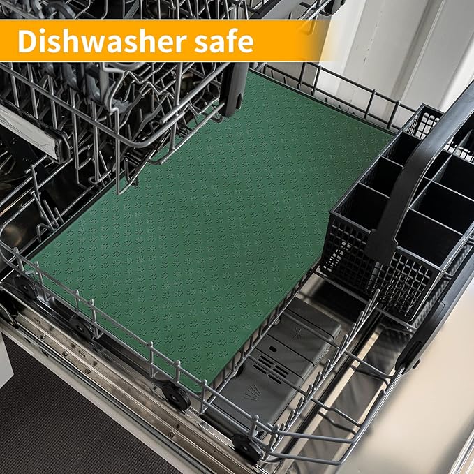 Ptlom Pet Placemat for Dog and Cat, Waterproof Silicone Pet Feeding Bowl Mats for Food and Water, Small Medium Large Dogs Mat Prevent Residues from Spilling to Floor, Hunter Green, 24.5" 16.5"