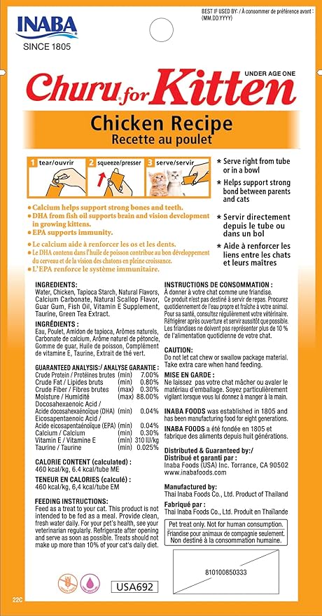 - MADE WITH WHOLESOME INGREDIENTS YOU CAN TRUST: Every Inaba product is made with yummy high-quality ingredients including farm-raised chicken and/or natural wild-caught tuna