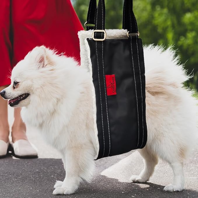 - Easy to use and store: place the harness under the dog's belly with the fleece lining touching their belly, and adjust the webbing as needed. It can be easily folded for portability when not in use.