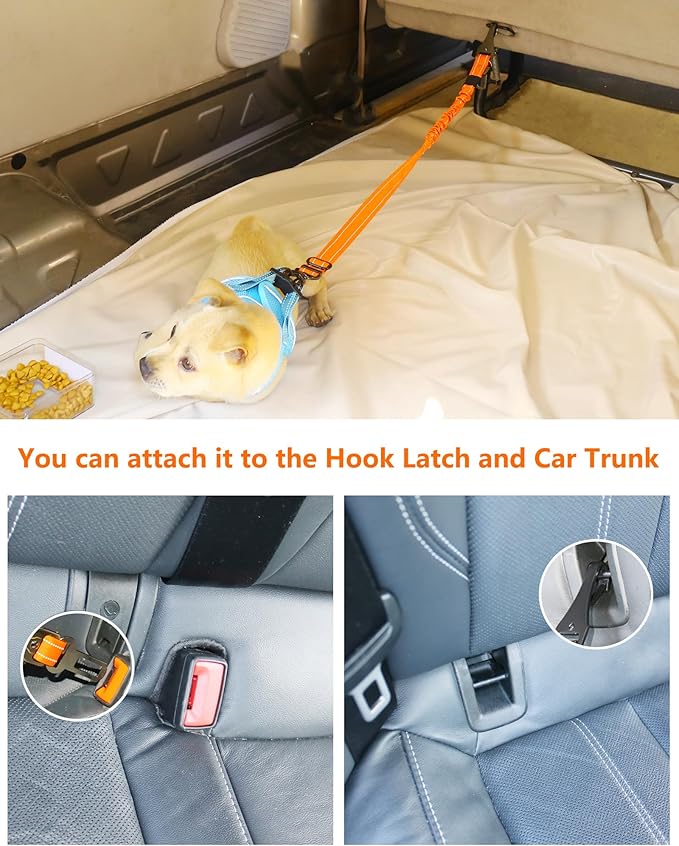 AUBELL Dog Seat Belt for Car,Updated 3-in-1 Adjustable Reflective Bungee Heavy Duty Dog Car Harness Tether with Clip Hook Latch & Buckle,Swivel Zinc Alloy Carabiner,Orange
