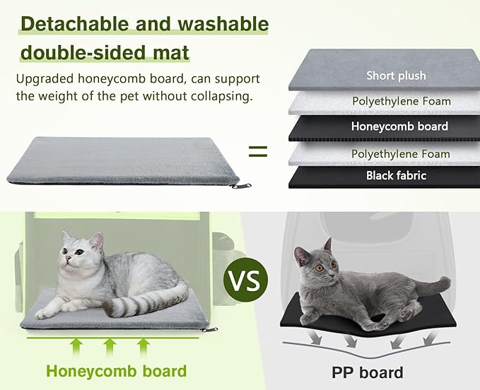 - 【 GREAT VENTILATION & VISIBILITY & COMFORT 】: A 3-panel acrylic board design can provide excellent light transmission and visibility. 4 ventilation holes are located on both sides and at the top with a breathable mesh, ensuring airflow and no sultry heat. To enhance comfort, the pet cushion is placed inside the bag's bottom and has a removable, washable cover. This ensures your furry friend has a spot to rest while on the go.