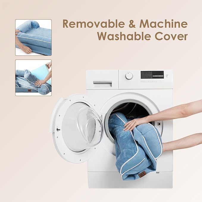 - CARE INSTRUCTIONS: Our dog bed features a removable and washable cover with a zipper closure, making it easy to clean. Remove the foam insert, and the cover can be washed in a machine. Please note that the foam insert is not washable. Allow the bed to expand for 24-48 hours after unpacking.