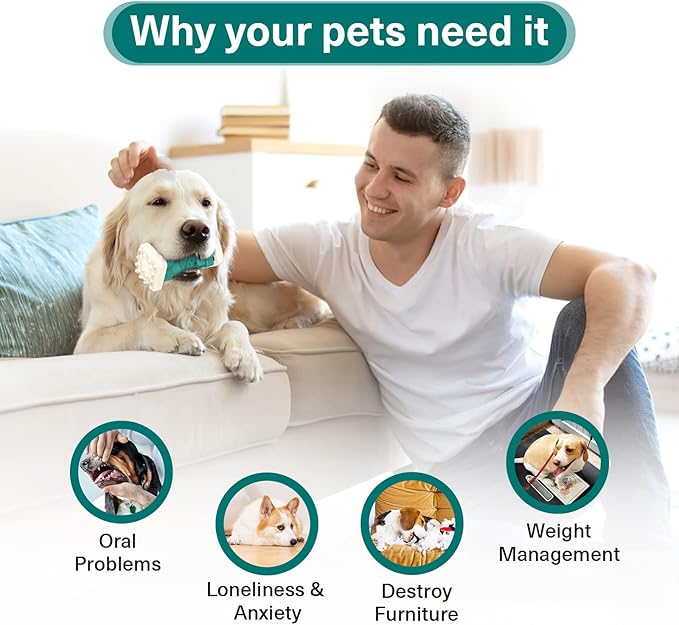 - Dog Chew Toys For Aggressive Chewers: This dog toys is made of natural rubber and tough nylon. They can help grind their teeth, relieve anxiety, train, and reduce damage to furniture or shoes, pet boredom and barking