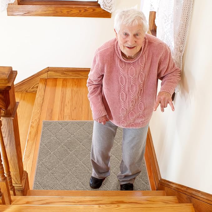 - NON-SLIP STAIR RUG: Multi-purpose Stair mats to use the TPE Non-Skid backing on dry floor, helping it to stay in place on your floor, it won't slip or scuff floors. Low profile design so doors won't get stuck.Perfect for homes with pets (dogs or cats) or kids.