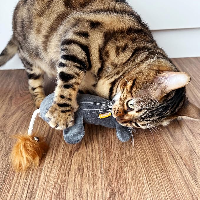 TTcat Catnip Silvervine Matatabi Pillow for Cats Kittens,Crinkle Sound Toy,Cat Kicker Toy,Large Size Cat Soothing Plush Pillow (Mouse).