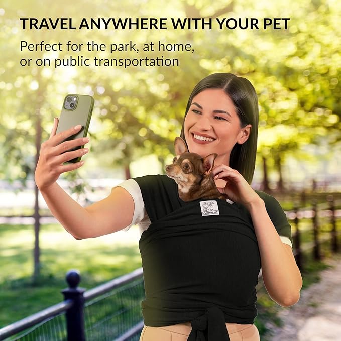 Dog Sling Carrier for Small Dogs - Anti-Anxiety Cat Sling, Puppy Pouch - Pet Sling in Gray Black Blue Green Pink Yellow (Black, Standard)