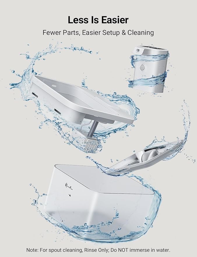 - Cleaning Is A Breeze - DownyPaws cat water fountain wireless is BPA-free and helps prevent pet acne. All parts are easy to assemble and disassemble, makes it super easy to clean every corner without hassle. *NOTE: For the spout cleaning, rinse only, don't immerse the battery compartment in water