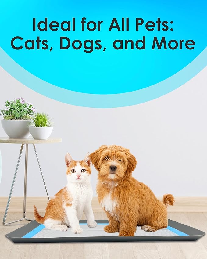 - EASY TO USE PEE PAD HOLDER TRAY - Place on the floor or any surface for this kitten pad holder or puppy pad holder and put the training pad on top. Replace training pads easily after use. It has a dimension of 18.3 x 13.4 x 0.6 inches and works with most training pads measuring 11.5 inches by 17 inches and smaller. Ideal to use as a Pee Pad Holder for Puppies, small dogs, Kittens, or Cats with smaller builds.