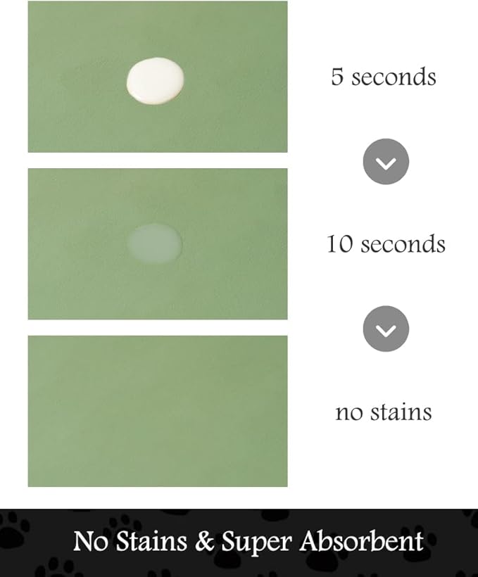 - Super Absorbent & Durable: Perfect pet supplies.This pet food mat can prevent liquid from overflowing. Super absorbent and quick-drying ability to avoid wetting pet paws even for messy drinkers. Sturdy dog & cat food bowl mat cannot be torn easily and avoid eating by mistake. Keep the pet's eating environment tidy and clean.