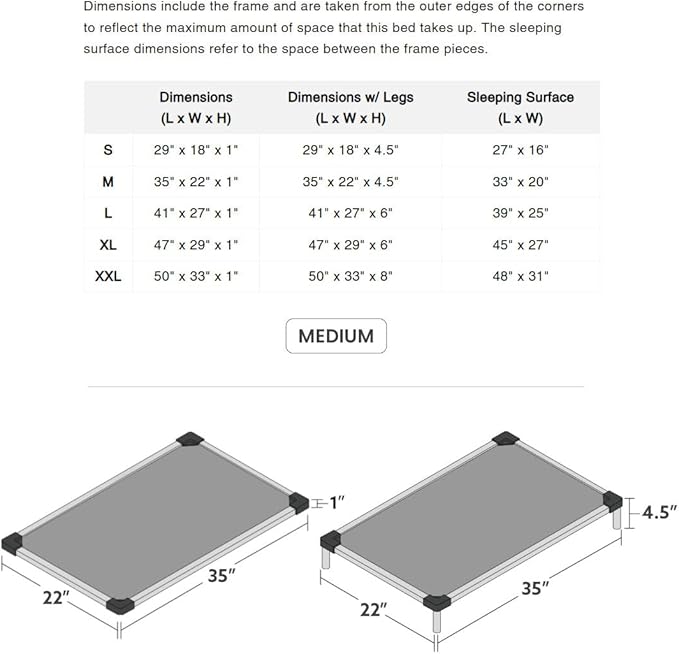 - Elevated and Padded for Extra Comfort: The bed's padded sling is filled to a 1.5” thickness with recycled polyester fiberfill for extra softness and insulation. When elevated with the included legs, it conforms to your dog’s body to eliminate pressure points and provide orthopedic-style support.