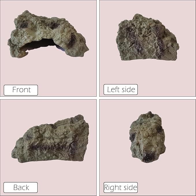 - Size – The cave has a suitable size entrance (Please read the measurement pic for details). The edges of this reptile cave and rock are crafted exquisitely to be smooth and safe to avoid cutting your pet. This reptile rock creates a comfortable and natural hide for ball python, bearded dragon, leopard gecko, tortoise and lizards, etc.