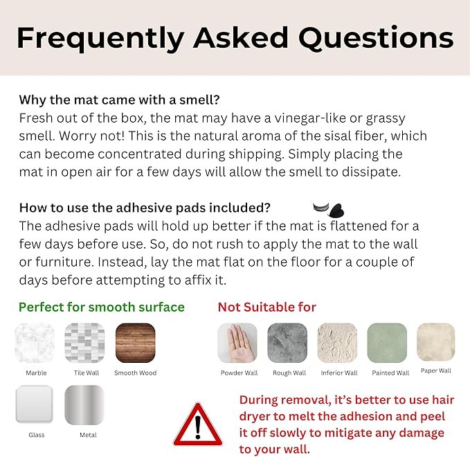 - Shedding-resistant Material for Less Mess, More Comfort: Reduce shedding and mess with our natural sisal material. Provide your cat with a safe and comfortable scratching surface that doesn't create a mess. Keep your home looking and feeling fresh with our shedding-resistant cat scratcher mat.