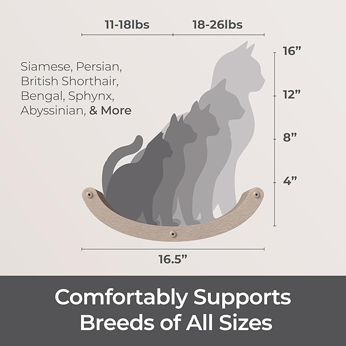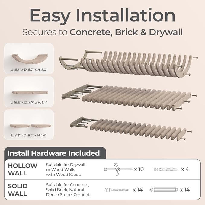 - Effortless Paradise: This cat playground includes all installation hardware, allowing your fur-baby to start exploring right away. Our cat climbing shelves securely attach to concrete, cement, brick, dry wall and more ensuring your cat’s safety.
