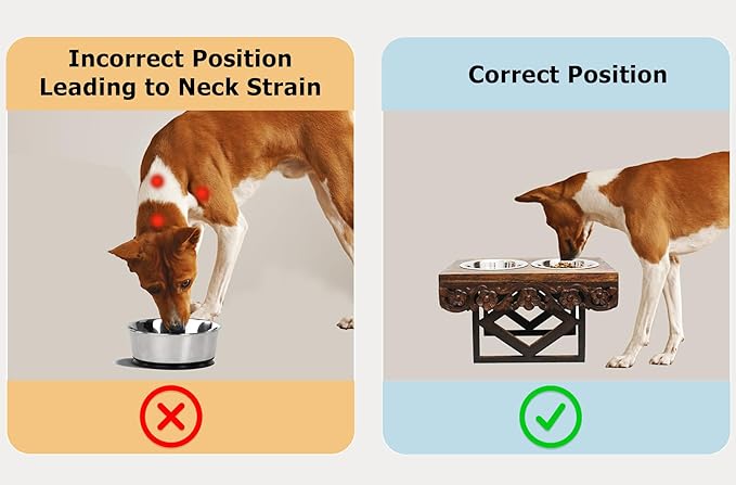 - 🐕 CARE: The stainless steel bowls must be cleaned as needed. The stand requires little maintenance. Light dusting with a dry cloth. Do not use abrasive cleaners as it may remove the finish.