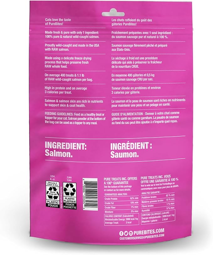 PureBites Freeze Dried Salmon Cat Treats, 4.7Oz | 134g - Jumbo Size