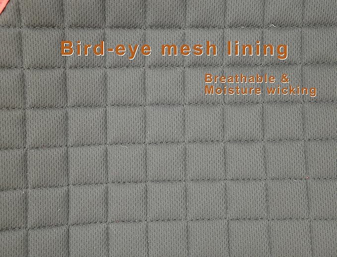 • The bird-eye mesh cloth as lining effectively controls heat and sweat, efficiently wicking away moisture. The pique surface helps keep it from slipping.