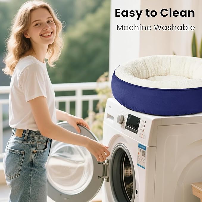 Love's cabin Round Donut Cat and Dog Cushion Bed, 25in Pet Bed for Small or Medium Dogs, Anti-Slip & Water-Resistant Bottom, Soft Durable Fabric Pet Beds, Washable Calming Cat & Dog Bed Navy