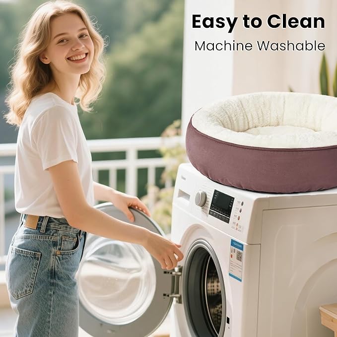 Love's cabin Round Donut Cat and Dog Cushion Bed, 30in Pet Bed for Medium or Large Dogs, Anti-Slip & Water-Resistant Bottom, Soft Durable Fabric Pet beds, Washable Calming Cat & Dog Bed Burlwood