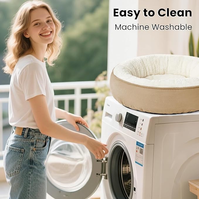 Love's cabin Round Donut Cat and Dog Cushion Bed, 30in Pet Bed for Medium or Large Dogs, Anti-Slip & Water-Resistant Bottom, Soft Durable Fabric Pet beds, Washable Calming Cat & Dog Bed Camel