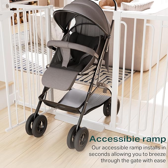 Cumbor 36" Extra Tall Baby Gate for Stairs, 29.7-57" Extra Wide Dog Gate for Doorways Hallways, Pressure Mounted Child Gate for Wide Opening, Auto Close Personal Safety for Babies and Pets, White