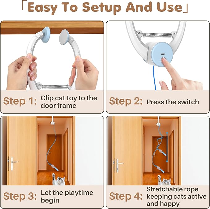 - ๐๏ธ๐๏ธใ๐๐ป๐ด๐ฎ๐ด๐ถ๐ป๐ด ๐ ๐ผ๐๐ถ๐ผ๐ป ๐ณ๐ผ๐ฟ ๐๐ป๐ฑ๐ผ๐ผ๐ฟ ๐๐ฎ๐๐ ใHang the interactive cat toys for indoor cats to a door frame or handle and watch them wiggle and dance when your cat interacts with them. With just one captivating toy, you can provide an entertaining play experience for your beloved feline, helping to reduce boredom and anxietyโideal for when you're not at home.