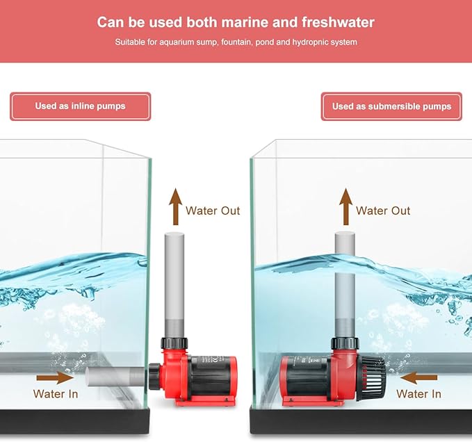 - Wide applicaion and Safty pump: can be used as salt water or fresh water aquarium sump pump, fountain pump,hydroponics pump and waterfall pump;