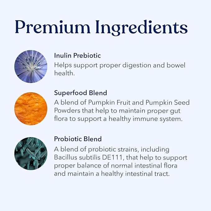 - Immune System Support - Contains ingredients like Bacillus Subtilis DE111 known to support a healthy immune system in dogs.