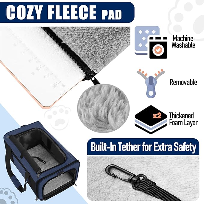 Dog Carrier Soft/Cat Crates Large Cat 20 to 25 pounds/Softsided Pet Car Travel Carry Bag 15 Pound Puppy/Top Open Transport Kennel Navy