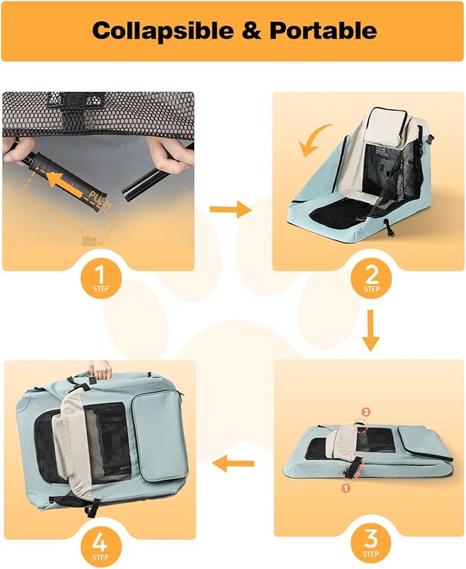 - 【2 Storage Pockets & 2 Portable Handles】The soft sided dog crate has side and top pockets to store essentials such as snacks and toys. The collapsible dog crate is easy to carry with the side handles, making it perfect for travel, transportation and daily walks.
