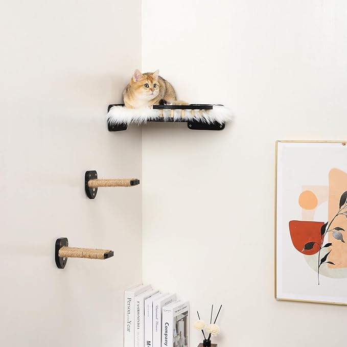 - 【Create a Cat Playground on Your Wall】Transform your unused wall space into a kitty playground with COOLEX's Cat Wall Shelves. The hemp rope on 3 cat wall steps design offers your cats a more stable grip and safe walk on the wall. Cat steps help give your cats a private area, but also an enjoyable environment to keep them active and happy.