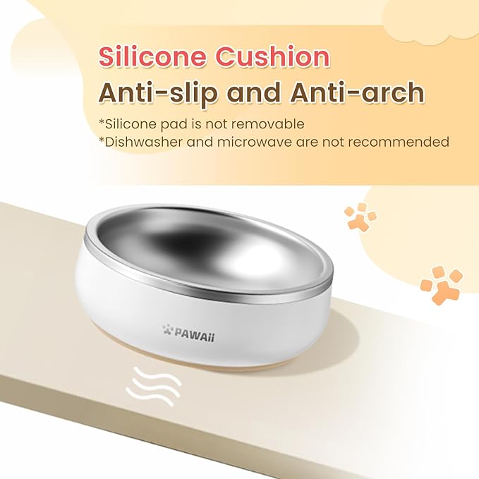 - ๐ ๐๐ซ๐๐๐ณ๐ ๐ญ๐จ ๐๐ฅ๐๐๐ง: Pawaii stainless steel dog bowl repels oil, does not hide dirt, and can be cleaned by simple flushing. Note that unlike the 34 oz. and 68 oz. bowls, the non-slip mat is not removable and is therefore not dishwasher or microwave safe.