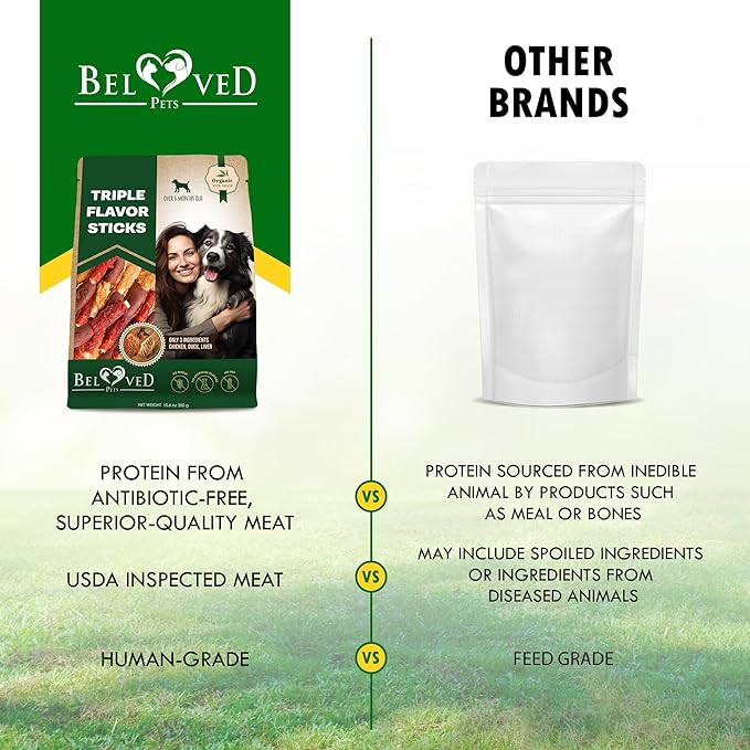 - ✅ALL-NATURAL GRAIN CORN AND GLUTEN FREE DOG TREAT : Your pup deserves the best in life which is why Beloved Pets raw hide Dog Treats are made with quality chicken or duck beef. Grain-free and corn-free it's 100% digestible for your dog's sensitive stomach. Our dog treats n chips is packed in soft pack. Making it the perfect meal on-the-go for your favorite friend.