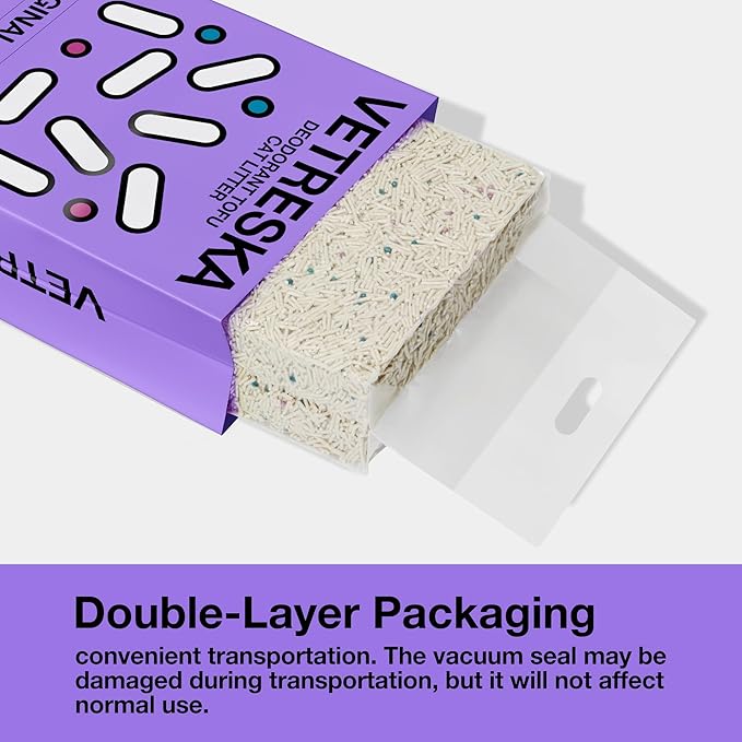 - 【Natural Plant-Based Ingredients】VETRESKA fast clumping tofu cat litter is made from all-natural peas and cornstarch, guaranteed safe ingredients.It can maximize water absorption & deodorization, anti-sticking, dust-free and always keeps air fresh
