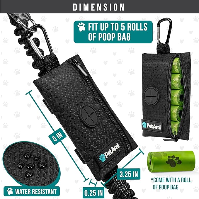 - 2 PACK DOG WALKING BAG: PetAmi poop bag holder dispenser includes one roll of dog poop bags, measures 5 x .25 x 3.25 inches, and is made of durable oxford polyester. Doggy trash bag carrier is refillable and is compatible with most dog poop bag rolls. This pet travel bag is a great gift for dog mom, dad, parents, owners, and trainers. Comes in multiple colors to mix and match your dog leashes.