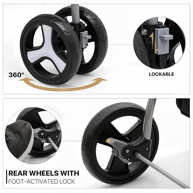 - Superior Wheel Design for Smooth Rides - Navigate with ease thanks to our pet stroller's robust wheel system. It boasts a 6-inch front wheel diameter for agile maneuvering and a 7-inch rear wheel diameter for stability, complete with reliable rear wheel brakes for safe strolling.