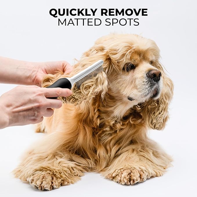 - 2-IN-1 DETANGLER COMB: Simplify the grooming process by using our dual length pet combs for dematting, detangling & combing. It features both long & short metal teeth, so it cuts time in HALF!