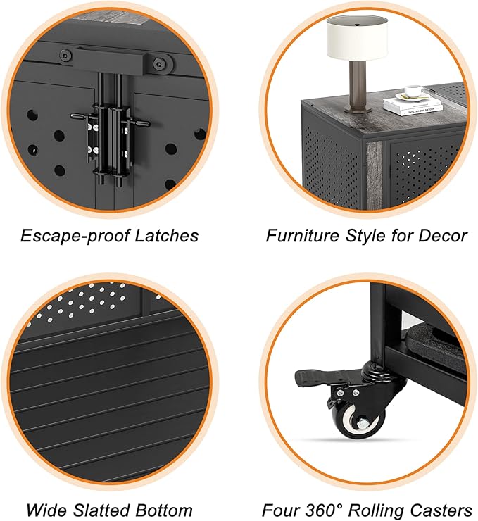 - [Washable Tray and Lockable Wheels] The dog cage comes with an entire washable plastic pan that simplifies the cleaning process. Additionally, the lockable wheels provide the flexibility to position the crate wherever needed with ease.