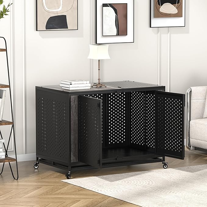 - [Sturdy Materials and Long-Lasting Durability] This heavy duty dog crate is made of high-quality steel and reinforced particleboard, preventing the large kennel from being damaged or rusting.