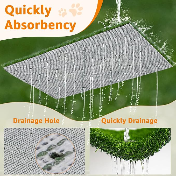 - 【QUICKLY ABSORBENCY】Dog litter box with a specially designed backing allowing for complete drainage, you will have no need to worry about your dog running over your new rug in the living room with their muddy paws from potty training. Large artificial grass for dogs potty gets your dog used to the feel of real grass while potty training, to meet your pet’s needs.
