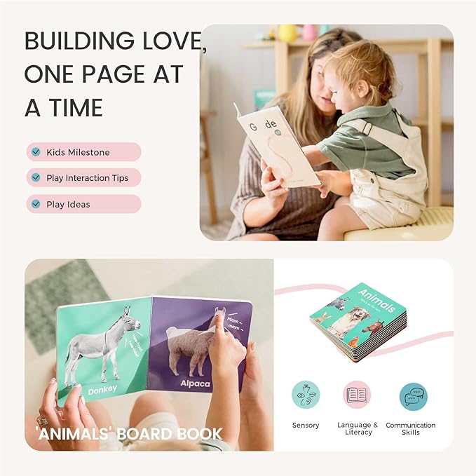 - Smart Toy Selection: Immerse your little one in a world of imagination with our carefully curated toy collection. Whether it's the interactive Lacing Beads Set or the educational Animals Board Book, each item is designed to spark curiosity and inspire young minds. With every play session, your child will unlock new levels of sensory awareness, problem-solving skills, and imaginative play, making learning a joyful adventure!