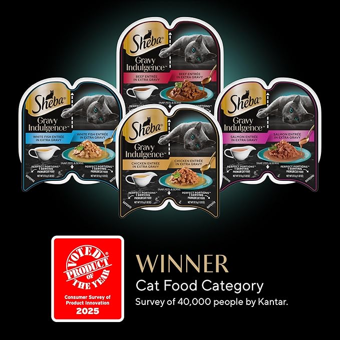 - Extra Gravy, Extra Love: Sheba Gravy Indulgence Wet Cat Food delivers 70% gravy to 30% chunk, serving up extra gravy when compared to Sheba Perfect Portions Cuts in Gravy