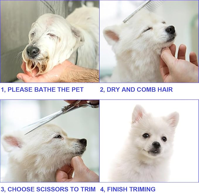 - Round Tips For Safety: No worry about accidentally poking pets, especially when grooming sensitive areasοΌsuch as face, ears, eyes, nose, pawsοΌ, because our dog grooming scissors kit has rounded end tips