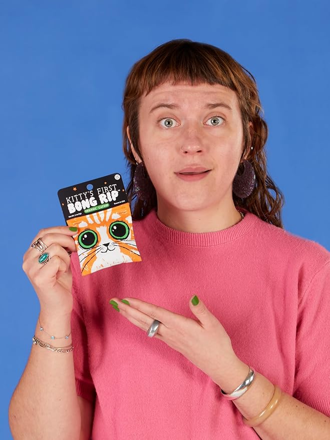 Blue Q Kitty's First Bong Rip Catnip Cat Toy. Premium Organic Catnip Grown in The USA, 100% Cotton Pouches, Kitty Graphics Sure to Delight Every Cat-Keeper.