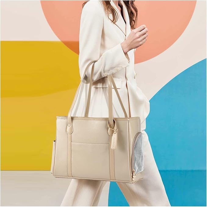 Stylish Dog Purse Carrier, Leather Pet Carrier Bag for Small Dogs Cats Puppy, Airline Approved Soft-Sided Carrier Ivory
