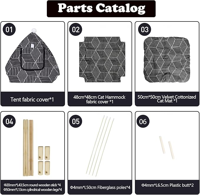 - PINE TREE MATERIAL FRAMEWORK: The supporting wooden poles of animal tents are made of polished natural wood. It is solid, healthy, safe, and safe. Make your beloved pet healthy sleep and suitable for Outdoor Cat TENTS for Indoor Cats.