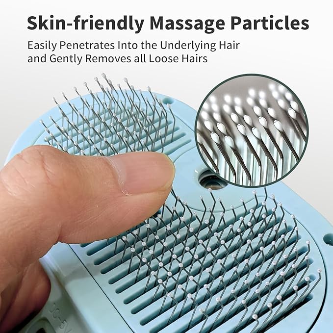 - 【Effortless Self-Cleaning Cat Brush for Indoor Cats – No Hassle, No Mess】 Tired of tangled hair clinging to your brush? Our steam cat brush features a one-touch hair release button that makes cleaning a breeze. Simply press after grooming, and watch the hair slide off effortlessly. Convenient and mess-free, it's a grooming game-changer!