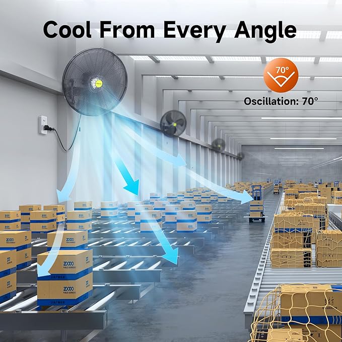 - 【70° Oscillation and Adjustable Angle】 Provides wider coverage of airflow to increase air circulation; ideal for bedroom, living room, garage, basement, factory, warehouse, workshop, plant room, etc
