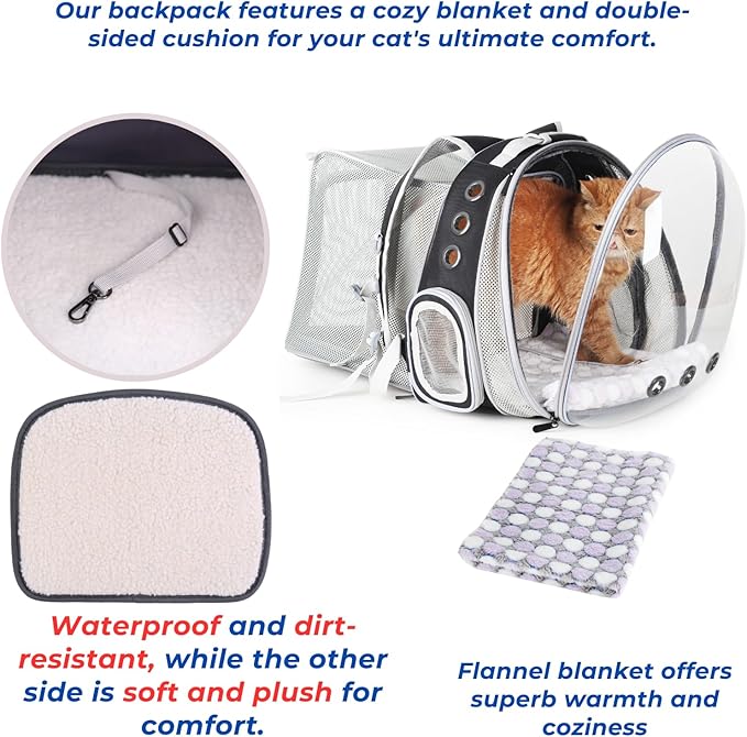 - Panoramic Bubble Window: Soft yet durable cat carrier backpack with a crystal-clear bubble window lets curious cats/dogs safely observe surroundings; Ideal for stress-free vet trips or airplane travel